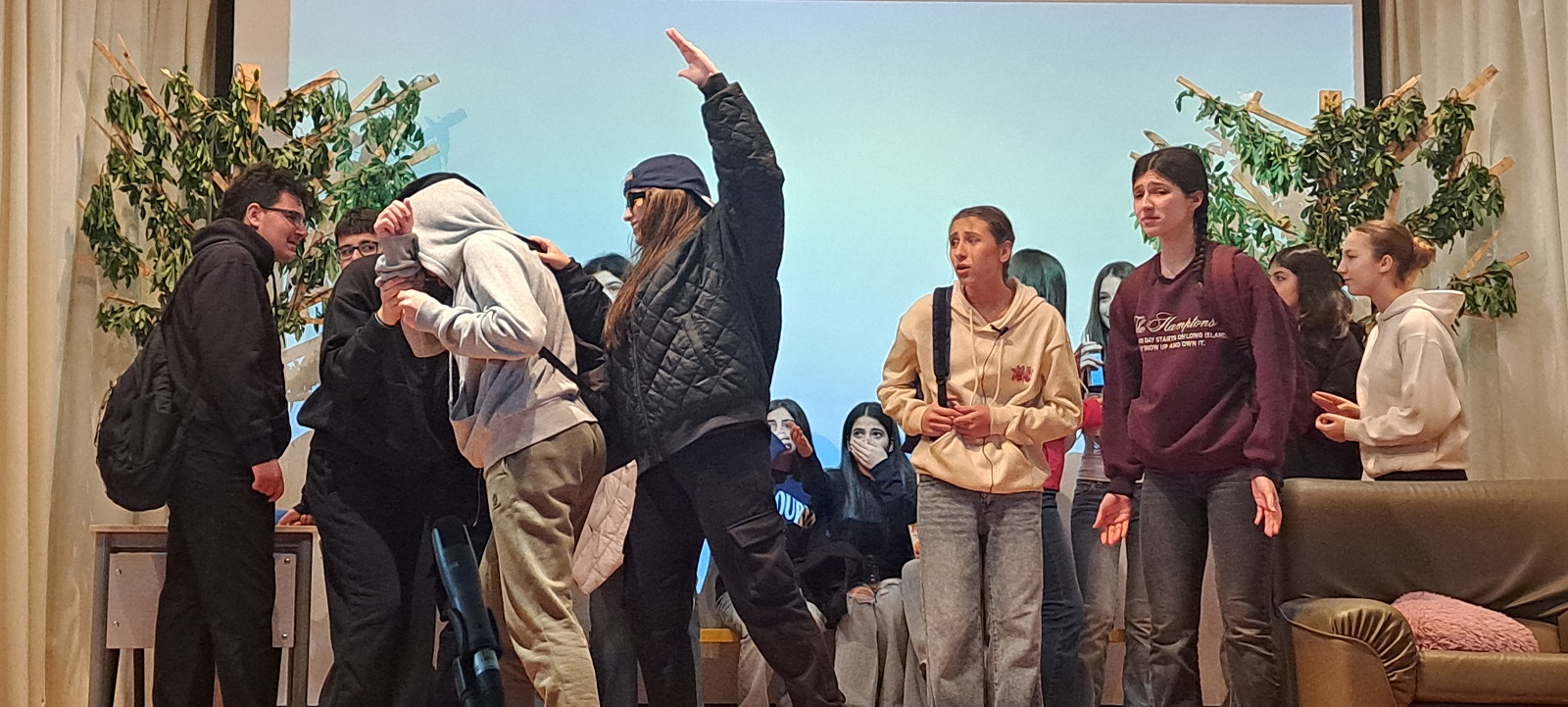 Περαστικοί/Μαθητές: Νικόλας Παπανικολάου, Ευφροσύνη Ρουβήμ, Παναγιώτης Στυλιανού, Ευγενία Χατζηνικολάου, Γ1, Νεφέλη Βικτώρια Μπεναβέλη, Γ3, Άντρεα Κουντούρη, Άντρεα Κυριάκου, Βικτώρια Κυριακή Σταυρίδου, Γ4, Ιωάννα Μποταΐτη, Β2, Ανδριάνα Πετρίδου, Β3, Έφη Κυριάκου, Αγγελική Κωνσταντίνου, Ηρακλείδια Σχίζα, Β4.