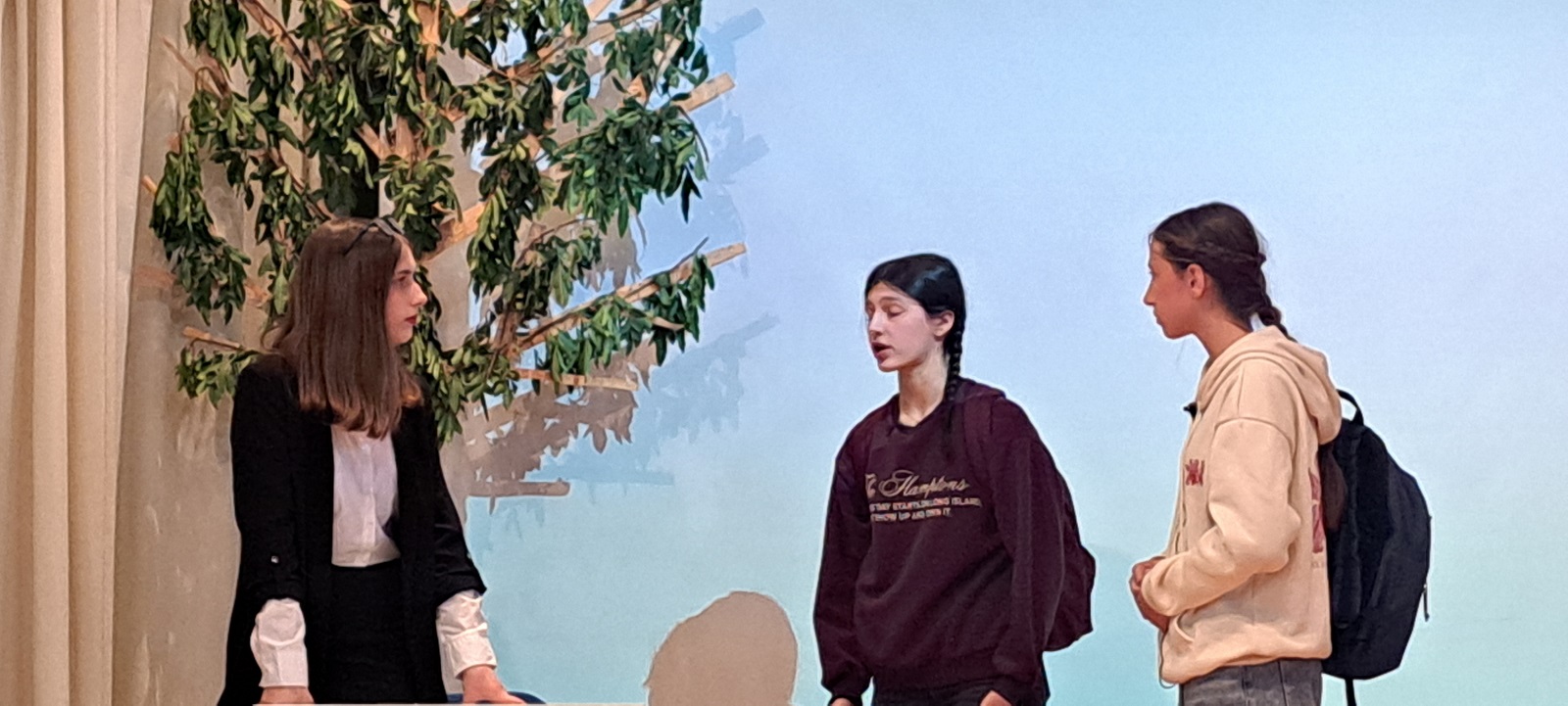 Στις 12 Οκτωβρίου 2025 η θεατρική ομάδα του σχολείου μας παρακολούθησε την παράσταση του Σατιρικού θεάτρου "Μια Ιλιάδα". Το κείμενο των Lisa Peterson και Denis O'Hare σκηνοθέτησε ο Ανδρέας Αραουζος και πρωταγωνίστησε η σπουδαία ηθοποιός Δέσποινα Μπεμπεδέλη.