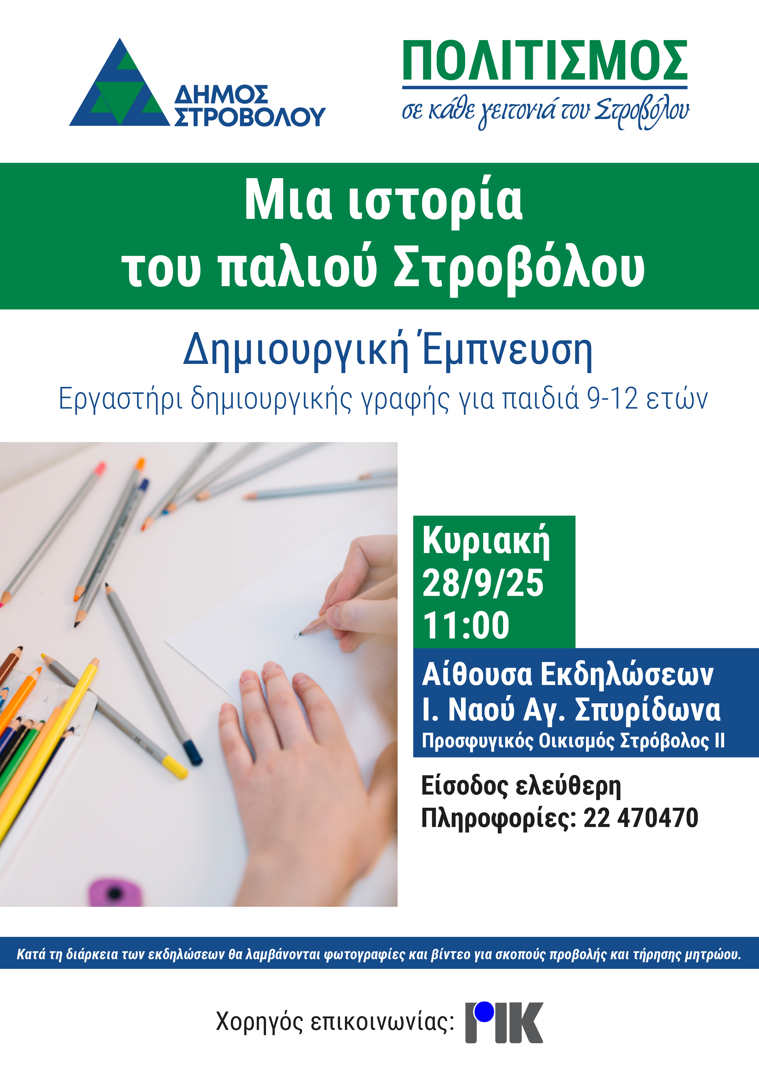 Δελτίο τύπου: Μια ιστορία του παλιού Στροβόλου- Δημιουργική έμπνευση. Αφίσα - 28 Σεπτεμβρίου 2025 |