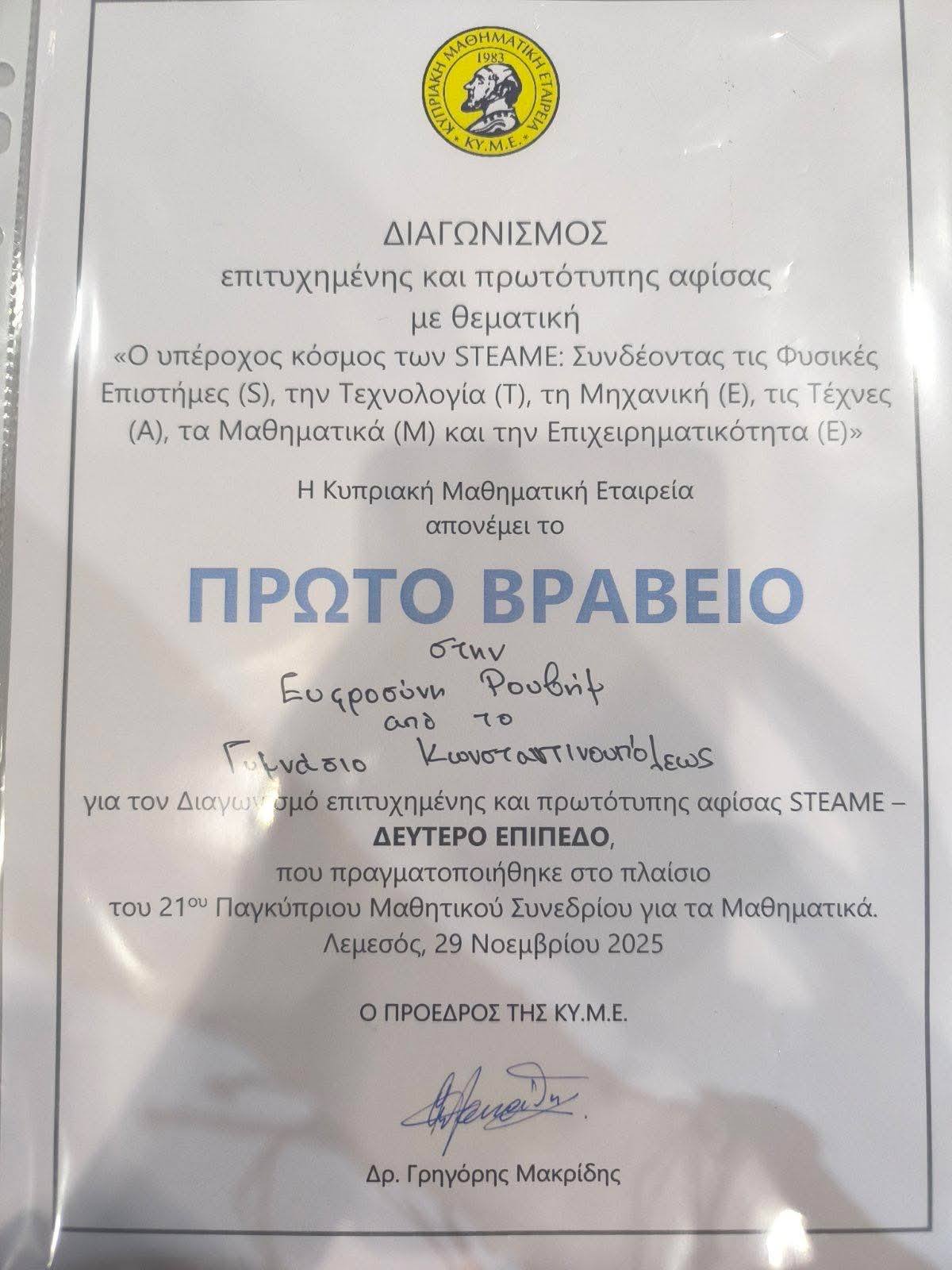 Διοργανωτής: Μαθηματική Εταιρεία Κύπρου