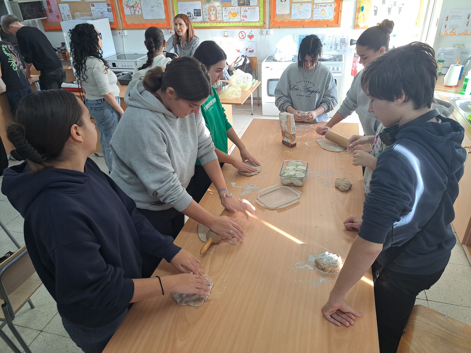 Στο πλαίσιο του μαθήματος Αγωγής Υγείας, οι μαθητές του προγράμματος Erasmus συμμετείχαν σε ένα δημιουργικό μάθημα υγιεινής μαγειρικής, γνωρίζοντας την κυπριακή παράδοση μέσα από την παρασκευή χαλλουμωτών με αλεύρι ολικής άλεσης. Μπορείτε να βρείτε τη συνταγή εδώ... Με ενθουσιασμό ζύμωσαν και έπλασαν τις δικές τους πίτες, αποκομίζοντας πολύτιμες γνώσεις τόσο για την κυπριακή κουζίνα και τον πολιτισμό μας όσο και για τη σημασία της υγιεινής διατροφής. Μπορείτε να βρείτε πληροφορίες για το χαλλούμι εδώ...